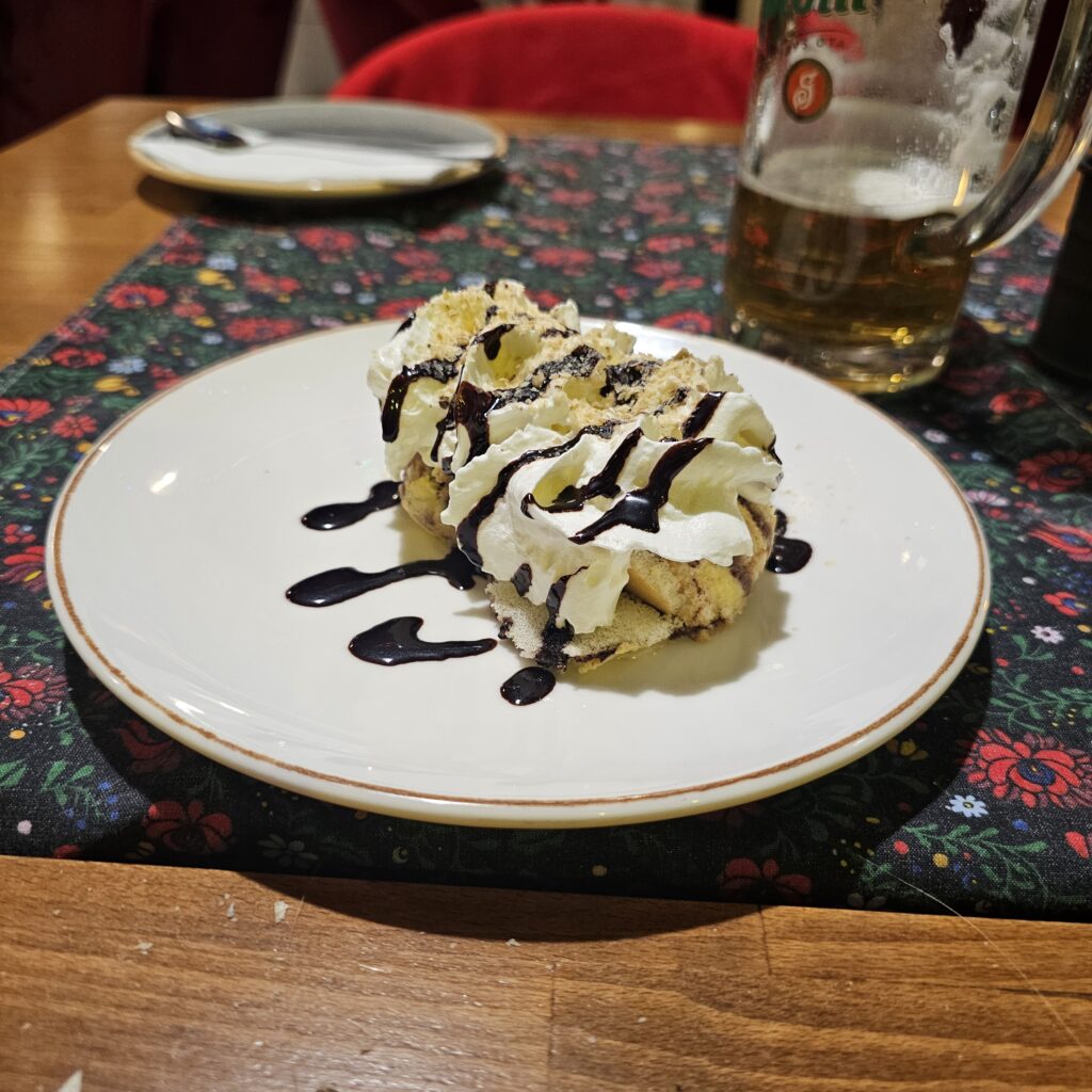Si vous y êtes en fin d’année, les marchés de Noël vous proposeront un large choix de Langos (pâte à pain cuite en beignet et garni comme une pizza)