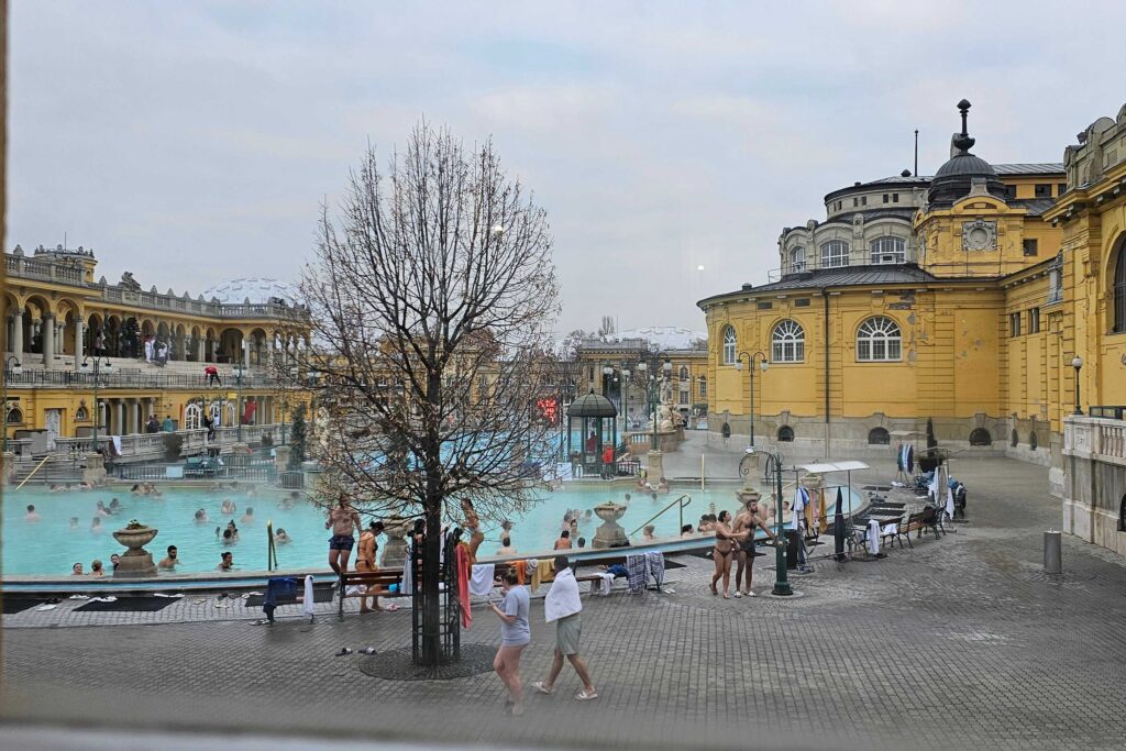 Par exemple, faites un Bain dans les sources d’eau chaudes comme les Bains Széchenyi. (Pensez à réserver surtout et allez y de préférence le matin !) C’est assez incroyable ! Il faisait -1° dehors et on était dans des piscines de 37 à 39°. Surtout prenez le vestiaire avec cabine, c’est pas beaucoup plus cher et c’est superbe. Les Bains de Széchenyi sont les plus grands bains d’Europe, avec pas moins de 15 piscines différentes.