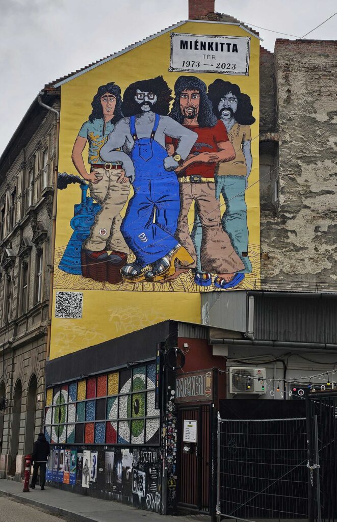 Revenons aux origines… Au début des années 2000, la jeunesse hongroise recherchait des endroits pour boire un verre pas cher. Le 7e arrondissement était à l’abandon, et des bars ont été aménagés dans des lieux aussi insolites que des bâtiments abandonnés, des parking, des terrains vagues ou des cours d’immeuble. Ces ruin bars ressemblent assez à des squats avec une décoration faite d’objets anciens, d’objets recyclés. Les graffitis sont légion ce qui donne une déco alternative.