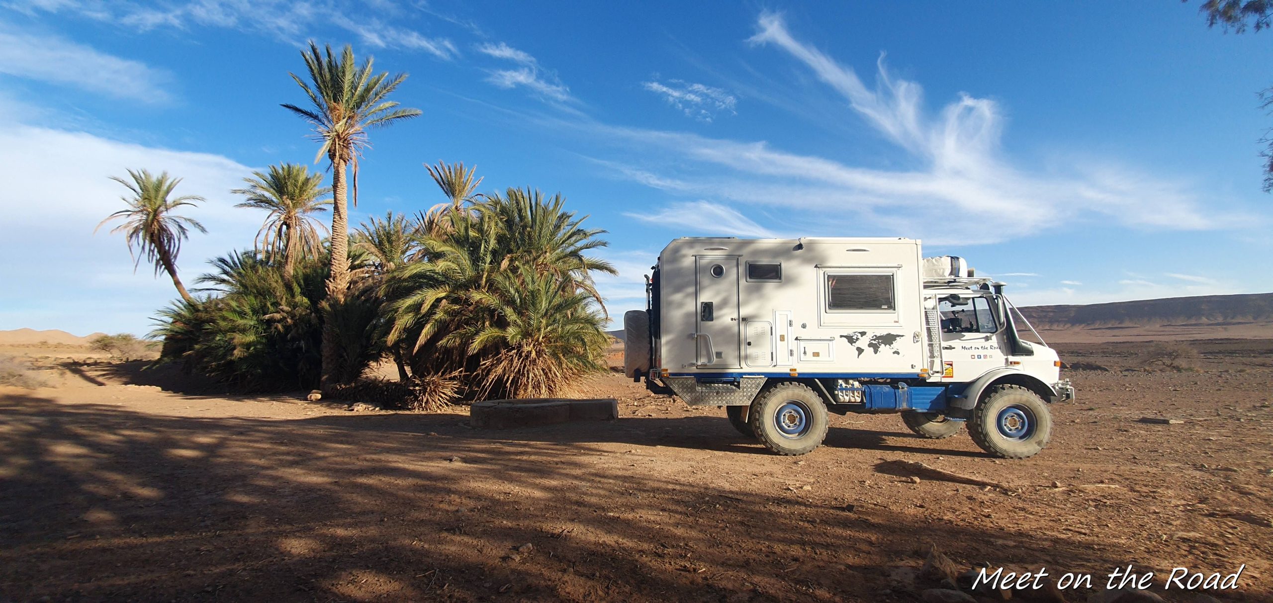 Après nos premiers dromadaires nous découvrons notre première oasis. Nous y passons un moment à faire des photos avec les véhicules.