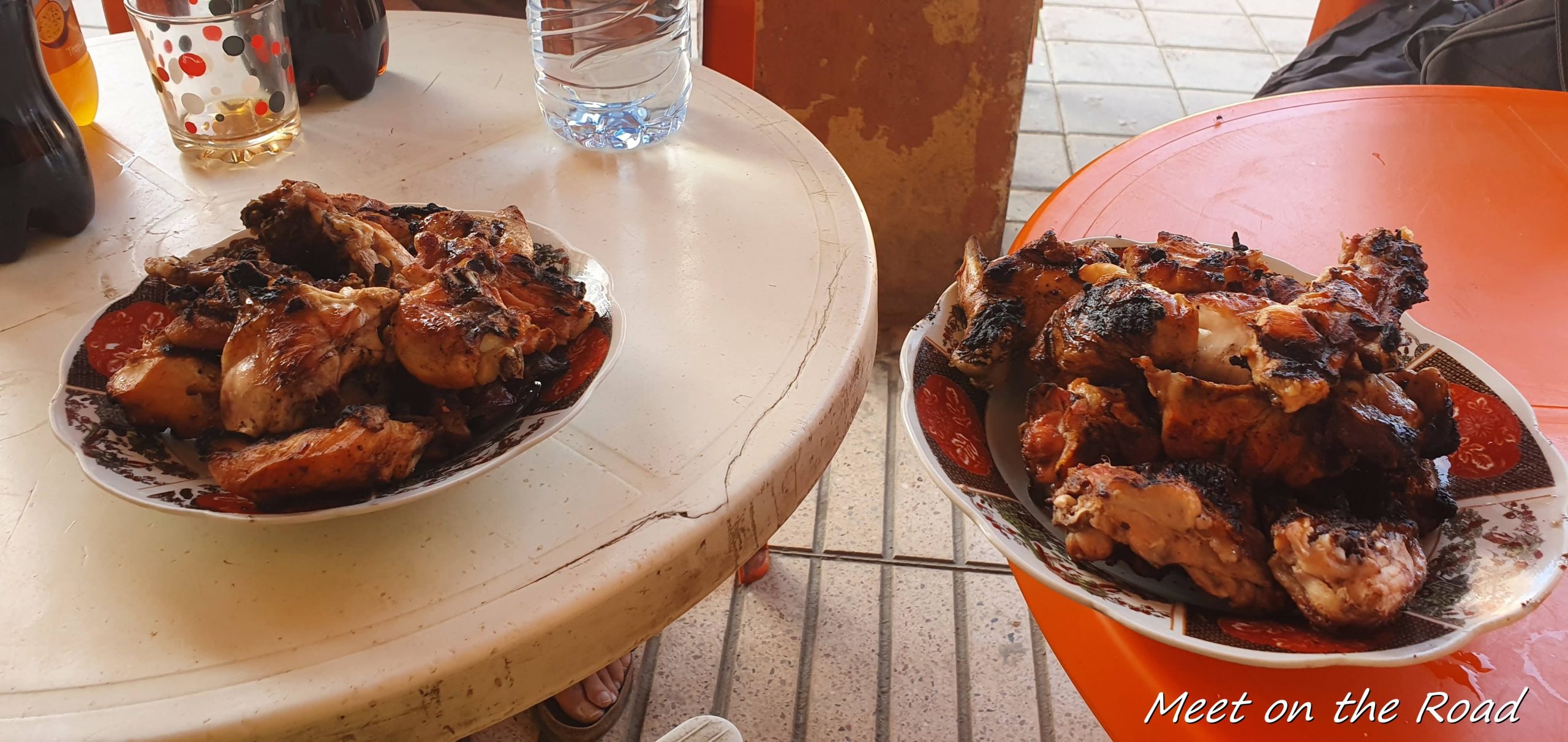 Nous retournons au bar ou notre poulet va cuire sur le barbecue avec l’aide de Philippe ! Daniel part avec le patron du bar chez l’épicier acheter les boissons. On a remarqué que les stocks sont plutôt en flux tendu dans les bars !