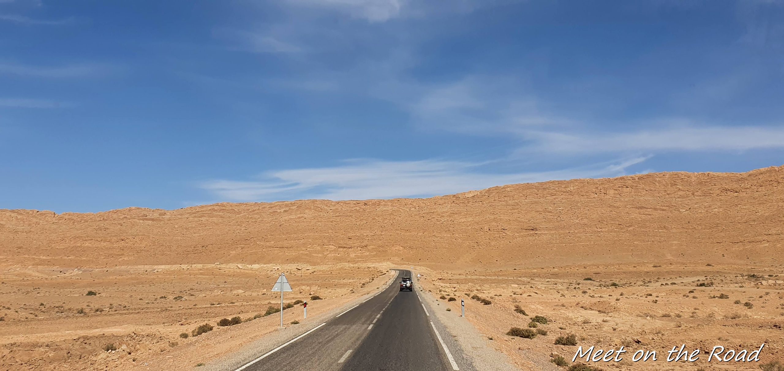 La route est longiligne au milieu de grands espaces dignes de l’ouest américain ! On est dans la région du Drâa-Tafilalet oriental.